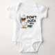 Vestir o seu pequeno neste hilário "Não Pato Comigo", casaco de bebê! Apresentando um pato legal com óculos de sol e uma atitude lúdica, este fato é perfeito para adicionar um toque de humor ao guarda-roupa do seu bebê. Fabricado a partir de tecido macio e respirável para proporcionar o máximo conforto e equipado com fechos de snap para mudanças fáceis na fralda. Este fato faz um presente único e divertido para novos pais ou para o seu pequeno pato duro.