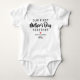 Traje de bebê personalizado com dia de as mães que apresenta o ditado bonito que diz "nosso primeiro dia de as mães juntos", um coração vermelho, nomes e o ano.