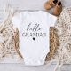 Um traje com uma design de "alô", com um pequeno coração, perfeito para anunciar sua gravidez para o vovô ser!