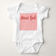 Este body de bebê tem um design Art Déco de linhas curvas de salmão em forma de triângulo em um campo de branco repetido em todo o design.