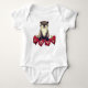 Uma lontra alegre fica sobre quatro corações vermelhos, cada um com uma letra soletrando "Amor"