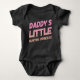 Este casaco de bebê diz "Pai Pequena Princesa Caçadora" em uma fonte rosa e fraca.