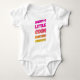 Este macacão-bebê diz "Pai Pequeno Luo Caçando Princesa" em uma fonte rosa, laranja e amarela.