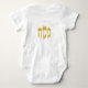 Feliz Passover Bebê Bodyfato com desejos de texto "Happy Passover" & " KOSHER", Passover - Pesach - em Hebraico Dourado Lettering, Vintage frame, Jewish tradicional Passover Matzah para cerimônia de esgoto, prato de pescada. Ilustração de Símbolos de Passover. Vestuário E Calçados > Bebê (0-24M) > Tops e T-Shirts De Bebês. Design com modelo de texto. Personalize-os adicionando nome ou texto de desejos.