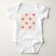 Este design apresenta um padrão repetido de corações de amor cor-de-rosa contra um fundo creme.