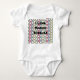 Esta roupa para bebê tem um design moderno do século médio de círculos brancos "deformados" ligados a linhas pretas num campo de faixas verde-claras, rosa-claro, azul-claro e amarelo-claro. Se você gosta do design, mas prefere cores diferentes, me mande mensagem.