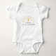 Body de bebê fofo e moderno com sol amarelo gráfico, coração e "pequeno brilho da mamãe" em fonte moderna. Personalize o nome conforme sua necessidade.