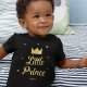 Adicione um toque especial às roupas do seu bebê com este adorável traje de uma peça personalizada que diz Pequeno Príncipe e tem uma coroa ouro. O texto, a coroa e as estrelas estão cobertos por uma falha falsa. Adicione o nome do seu menino para um toque personalizado, ou remova, de acordo com sua preferência. Também disponível como uma camisa de criança. Faz um excelente de aniversário personalizado, chá de fraldas, Natal ou outro presente de feriado!