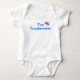 Esta camisa de bebê engraçada e fofa apresenta uma tipografia moderna "Pequeno Problemático" em azul com um bebê usando óculos de sol. Perfeito para bebês, presente de recém-nascido ou chá de bebê.