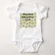 Este casaco de bebê tem uma design moderna do século médio de arcos bronzeados se repetindo em branco como um fundo com círculos de ouro verde repetindo com estrelas de ouro verde-escuro dentro.