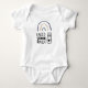 O body branco de bebé com o gráfico "Eu preciso de algum leite", melhorado com um arco-íris minimalista e uma garrafa de bebé ilustrada. Um design moderno, doce e neutro em termos de género, perfeito tanto para bebés meninos como meninas.