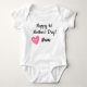 Celebrar um marco especial, com esta linda roupa para bebê. "Feliz Dia de as mães de 1rua" com espaço para adicionar o nome do bebê ou da Mãe. Personalizado para dar uma manutenção única.