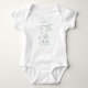 Um body de bebê decorado com um coelho da Páscoa branco e verde fofo para a primeira Páscoa do menino. Adicione um nome e ano ou sua mensagem pessoal e crie um presente perfeito para novos pais.
