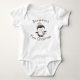 Compartilhe a alegria do Natal com seu bebê neste ano com este lindo body de Natal personalizável para o primeiro Natal do bebê. O design apresenta um adorável pinguim vestido com roupas de inverno e segurando um presente de Natal. Na parte de trás, há uma árvore de Natal. Personalize o nome do seu bebê e o ano com o nome e texto de sua escolha. Precisa de um chapéu para menina ou quer um personagem diferente? Envie-nos um e-mail e ficaremos felizes em personalizar algo especialmente para você.