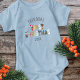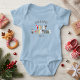 Há uma primeira festa de Natal do bebê acontecendo neste bodysuit para recém-nascido, e você está convidado a adicionar o nome e o ano do seu bebê. Letras fofas vestidas como muitos personagens de Natal - há bonecos de neve, renas e um chapéu de Papai Noel também! Divertido e festivo