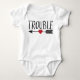 Duplo Roupa de Rosto Geminado - Vestir os seus bebês gêmeos em estilo com este fato duplo e malvado. Impressa na frente a palavra "Problemas" e uma seta com um coração. Encontre o traje combinando com a palavra "Duplo" e a seta inversa em nossas incríveis roupas de bebê para a coleção de gêmeos. O presente ideal para os futuros pais de gêmeos