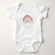 Adicione seu texto personalizado a este bonito e adorável design de cor d'água do arco-íris em tom, amarelo e azul, com corações e nuvens de amor. Personalize facilmente este belo vestuário para bebês com o seu texto personalizado clicando no botão "Personalizar" acima