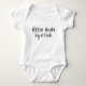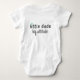 Esse belo traje para garotos pequenos mostra um simples coração azul com texto personalizável e ousado que diz, "Pequeno Cara, Grande Atitude." Personalize o texto para criar um presente de chá de fraldas divertido para familiares, amigos ou colegas de trabalho.