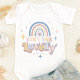 Esta cor editável com o arco-íris retrô não é ela adorável tipografia bebê roupa design é adorável para qualquer menina. A design apresenta tons de pínus poeirentos, amarelos e azuis silenciosos e faria um presente adorável para uma mãe esperançosa. É editável a cores, então basta clicar em "editar usando a ferramenta design" para fazer com que ela seja sua própria combinação de cores! Os motivos incluem um arco-íris fofo com corações, estrelas e um olhar retrô. Você também pode personalizá-lo com seu texto personalizado clicando em "editar usando a ferramenta design". Faz um presente de chá de fraldas único e personalizado, ou dar as boas-vindas ao novo bebê!