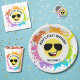 Transforme cada mordida de aniversário em uma celebração com nosso body de bebê Aviador Amarelo Feliz. Cada um apresenta um grande e alegre rosto amarelo feliz usando um par de óculos de aviador preto, sorrindo de orelha a orelha e espalhando boas vibrações para todos à mesa. A borda externa é salpicada com explosões de tinta colorida e coberta com glitter dourado brilhante, criando um visual festivo e artístico que certamente vai alegrar qualquer festa. Personalize com o nome e a idade do seu filho!