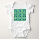 Este macacão-bebê tem uma design de flechas moderna do século médio em dois tons de azul num campo de verde-marinho.