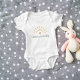 Body de bebê fofo e moderno com sol amarelo gráfico, coração e "solzinho da mamãe" em fonte moderna. Personalize o nome conforme sua necessidade.