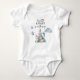 Celebre o cavaleiro que está prestes a nascer com este Bodysuit de Bebê temático de conto de fadas encantado em cores azuis com castelo, dragão e nuvens para o seu Churrasco de Bebê do Pequeno Cavaleiro Menino