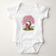 Envolva seu pequeno em conforto e charme com este adorável body de jersey para bebês, apresentando uma garotinha de quimono e seu cachorrinho sob uma árvore de flor de cerejeira.