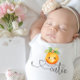 Body de bebê laranja com texto Eu Sou Uma Pequena Fofa. Este body de bebê fofo pode ser personalizado com texto.