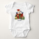 Ein süßer glücklicher Pinguin mit Weihnachtsmütze freut sich über Geschenke. Personalisiere den Strampler zusätzlich mit dem Namen des Babys für besonders festliche und individuelle Feiertage