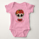 Este body de bebê rosa é uma encantadora celebração do Dia dos Mortos, apresentando uma deliciosa La Catrina estilo kawaii que adiciona um toque divertido à tradição. O fundo rosa suave estabelece um tom adorável e caloroso, fazendo com que a arte vibrante se destaque com sua energia alegre e festiva.