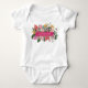 Bebê Tropical. Vestir seu bebê em estilo com nosso traje corporal personalizado de uma peça com o nome do bebê. Brimmmando com elegantes toques modernos e cores vibrantes, este traje corporal apresenta palmeiras verdes e folhas monstera, orquídeas vívidas magenta e fuchsia, e delicadas flores rosadas de hibisco. Com esta roupa de bebê maravilhosamente projetada e personalizada, você pode garantir que todos os detalhes do seu chá de fraldas sejam perfeitamente coordenados.