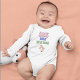 Design bonitinho com texto divertido "Um passo de cada vez" e um par de pés de bebê no fundo.