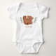 Um traje de bebê bonito, com uma ilustração pintada manualmente de um filhote rolando de costas com folhagem verde em ambos os lados. você pode adicionar o nome do seu filho na parte inferior.