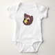 Um fato de bebê engraçado tendo um urso sorridente nele para fazer seu bebê feliz