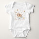 Um body de bebê fofo com um ursinho adormecido em uma nuvem, cercado por estrelas sonhadoras e uma lua crescente em tons suaves e neutros de creme e marrons suaves, este body sem gênero é perfeito para meninos e meninas. Seu design atemporal e encantador o torna um item obrigatório na lista de roupas ou presentes do seu bebê.