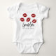 Roupa de corpo moderna e recém-nascida, com manuscrito com manchas de lábio e letra moderna.