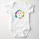 The graphic design on this baby shirt is soft and cheerful, with vibrant, pastel colors that are gentle on the eyes. It features a smiling animal character, like a cute bear or bunny, with large, friendly eyes and a small heart or flower beside it. The design incorporates elements like stars, clouds, and gentle rainbows to add a touch of innocence and joy. The text on the shirt might say something playful like “Little Sunshine” or “Mommy's Favorite” in a fun, bubbly font, giving it an extra dose of sweetness. The overall look is warm, inviting, and perfect for showcasing the baby’s cuteness with a soft, lighthearted vibe.