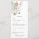 Uma design romântica que apresenta floral seca boêmica com a popular grama pampas, uma adição impressionante a qualquer tema de casamento. Personalize facilmente informações importantes sobre a escolha neste cartão de menu de casamento. Por favor, verifique nossos produtos correspondentes encontrados em nosso Conjunto de Casamentos Romântico Boêmia e Pampas.
