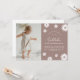 Um convite de Aniversário ao estilo "Boho" que apresenta um fundo cor-de-rosa, cor-de-terra, com flores margaridas brancas. Você pode adicionar sua própria foto ao convite.