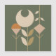 Um design de inspiração bibliográfica de formas simples em cores rústicas de verde, bronzeado, bege, marrom e laranja.