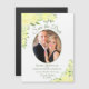 Este belo casamento magnético, exceto os cartões de data, apresenta um design floral rústico, mas elegante, pintado com sua foto em um quadro oval cercado por rosas de aquarela, flores e flores em tons de limão e amarelo canário, com um bando de folhas de eucalipto, verde e folhagem. A tipografia apresenta letras de rico. Este cartão de chic na moda boho é uma forma excelente de garantir que seus amigos e familiares estejam cientes do seu próximo casamento.