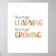 Boho sempre aprendendo o crescente sinal de motivação de cotação inspiracional de poster, de crescimento contínuo