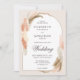 Crie a suíte perfeita e moderna de Casamentos com este adorável convite de casamento ao estilo natural que apresenta um design de coroa na moda boêmica com uma mistura de florais de aquarelas e ilustrações de grama pampas em uma paleta de cores de pincel e terra, complementada com fontes modernas. Edite facilmente os campos de modelo para adicionar seus detalhes de casamento em um arco de na moda. Veja a coleção correspondente de "Boho Arch & Pampas Grass Wedding" para ver todos os itens coordenadores.