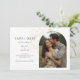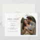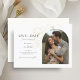 Esse casamento moderno e minimalista salva a data das cartas achatadas que contêm uma foto de casal de boho, delicada imitação de elementos florais de ouro e um conjunto contemporâneo de fontes em preto-jato. O detalhe da flor é repetido no verso contra um fundo de marfim mole. Este design é contemporâneo e chique. Perfeito para o na moda e casal elegante.