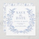 Incêndio em elegância clássica com nosso convite para fotos salvas na data do tema botânico. Esse convite sofisticado captura a essência do encanto rústico, enfeitado com uma coroa cativante de flores azuis de flor silvestre. Faça o tom perfeito para sua celebração com este design... refinado e na moda.