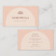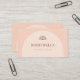 Feminina, cartão de visita boho com forma de arco em tons rosa. Todas as informações de sua empresa podem ser personalizadas, assim como o logotipo.