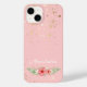Estilo Boêmico Rosa bonito A Capa de telefone Personalizável De Nomes Apresenta Uma Bonito Cor De Água Rosa E De Marfim Verde Floral E Splatter De Speck Dourados.