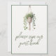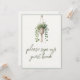Apresentando nosso exclusivo indicativo de livro de convidados, uma combinação impressionante de sofisticação e elegância inspirada na natureza. Este cartaz apresenta uma delicada ilustração aquosa de uma planta pendurada, suspensa de forma artística num cabide de macramé. A design desenhada à mão exude uma sensação de sofisticação da brisa, fazer a adição perfeita a qualquer evento moderno, na moda. As suaves matizes verdes da planta, aliadas à refinada tipografia, criam uma estética química sem esforço que é eterno e contemporânea.