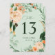 Cartões bonitos de números de mesa são a decoração perfeita para manter seu casamento, festa de noivado, janto de ensaio ou evento organizado. Estes números clássicos de mesa têm tons pastéis macios e florais aquosos modernos verdes em tons de pêssego, branco, marfim creme, sábio e verde mais brilhante. Esses cartões de mesa personalizados se coordenam com nossa coleção floral de cheio botânica de papel para papelaria e artigos de papel para eventos.